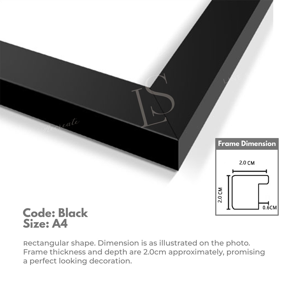 A4 Frame Minimal Wooden - A4 Size - Black/ White/ Wooden/ Oak Photo Frame