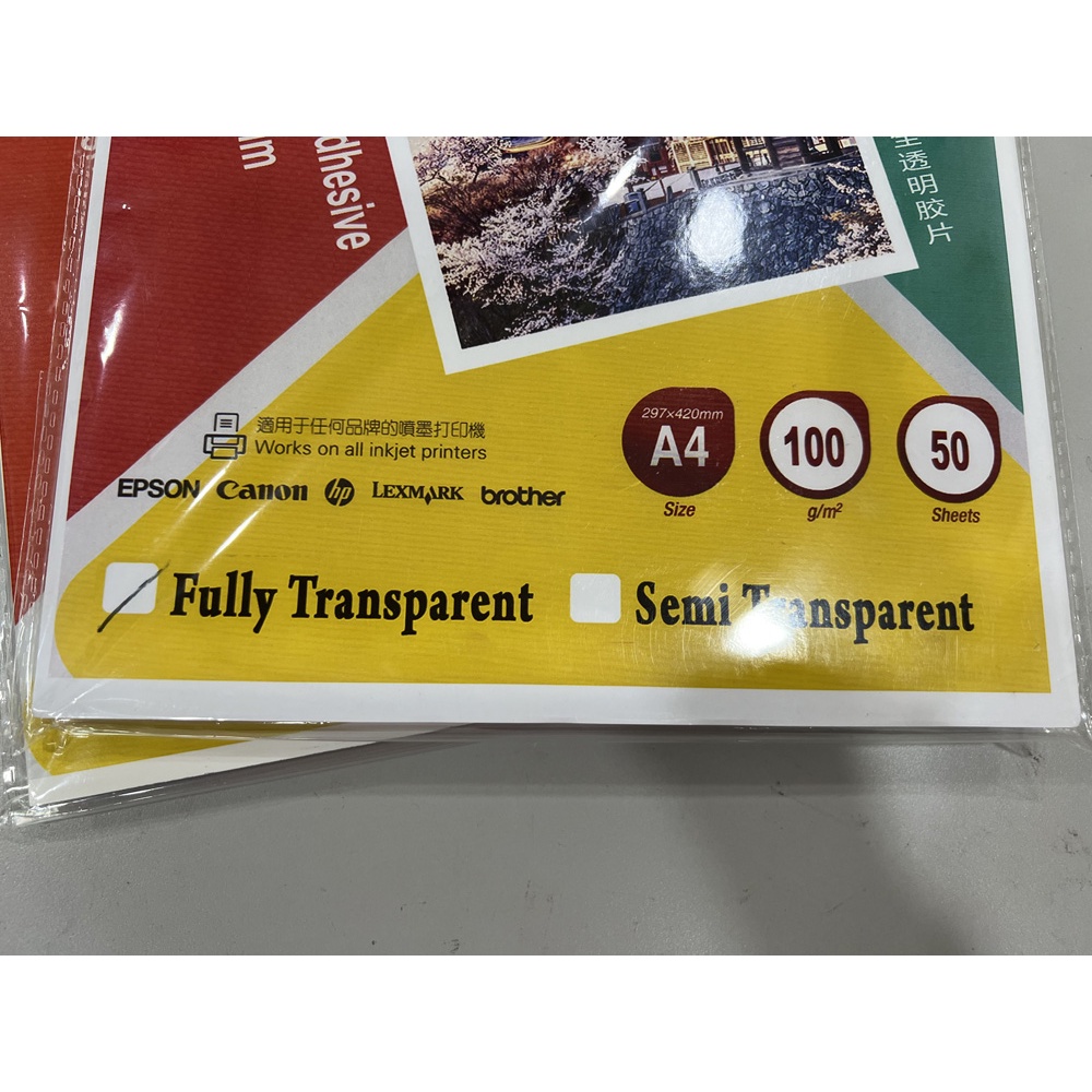 A4 Fully Transparent Sticker inkjet sticker 100gsm 50sheets