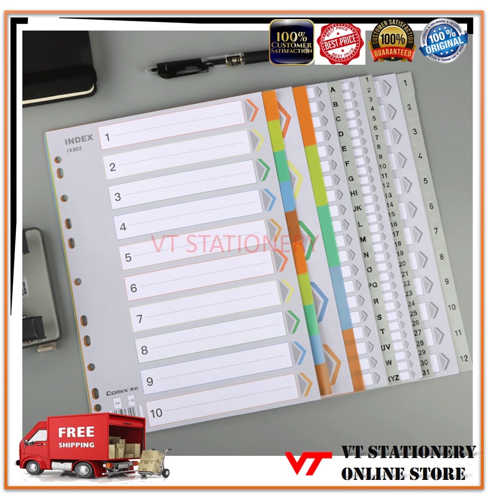 A4 INDEX DIVIDER SUITABLE FOR RING FILE / COLOURS / MONTHS / ALPHABET / NUMBERING