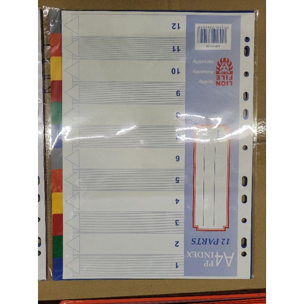 A4 Index Divider Plastic Type 10 Tabs & 12 Tabs Colour