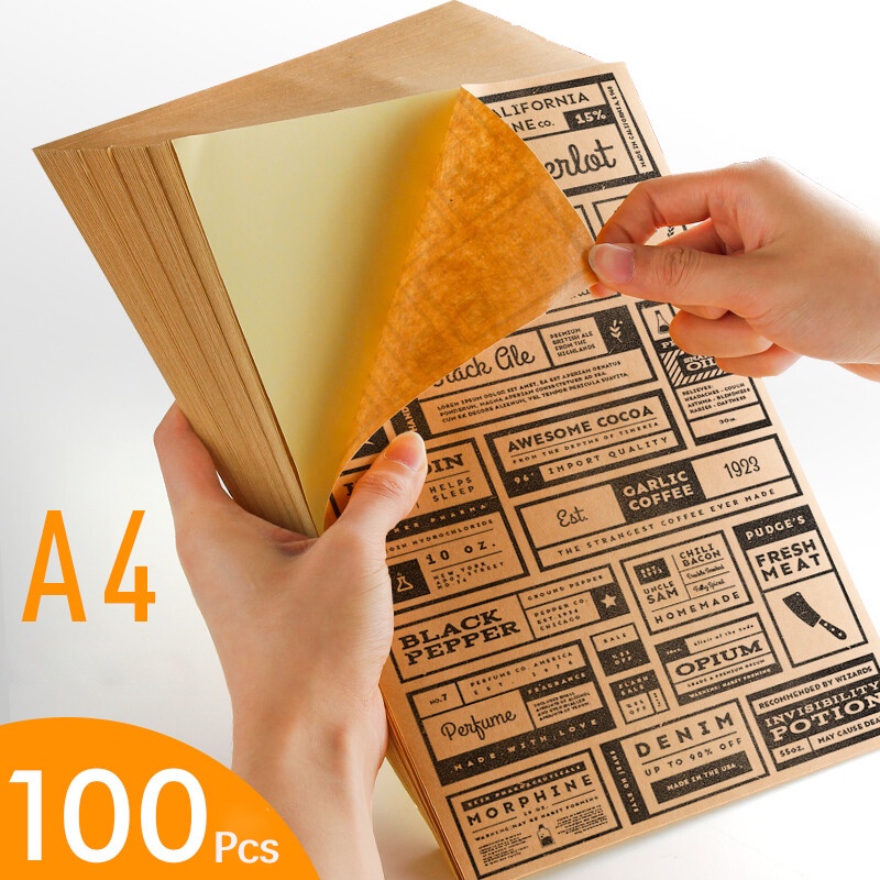 A4 PRINTABLE BROWN KRAFT STICKER 100 SHEETS / A4 KERTAS PELEKAT COKLAT /BROWN LABEL STICKER A4 / INKJET & LASER PRINTIN