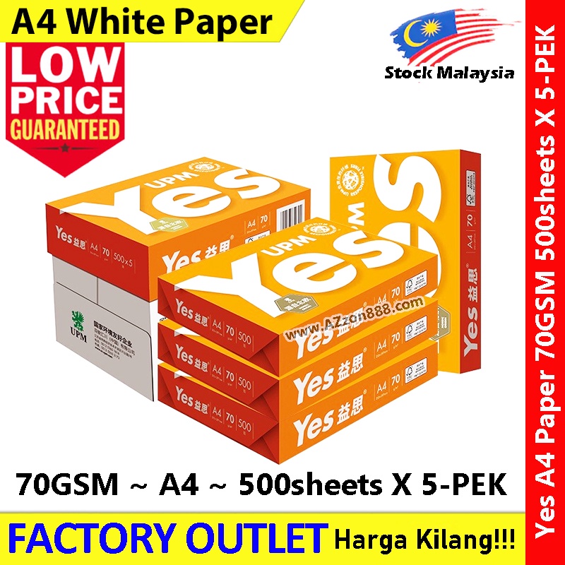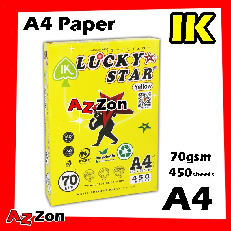 A4 Paper 70gsm / YES A4 PAPER / Multifunction Business Paper 70 / YellowA4 / IK Yellow Lucky Star