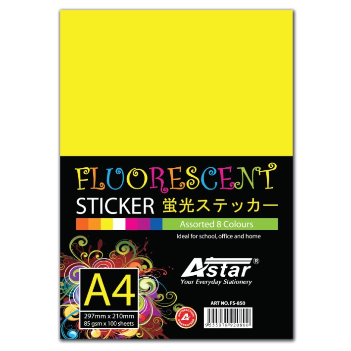 A4 STICKER/A4 FLUORESCENT COLOUR STICKER 10PCS PER PACK
