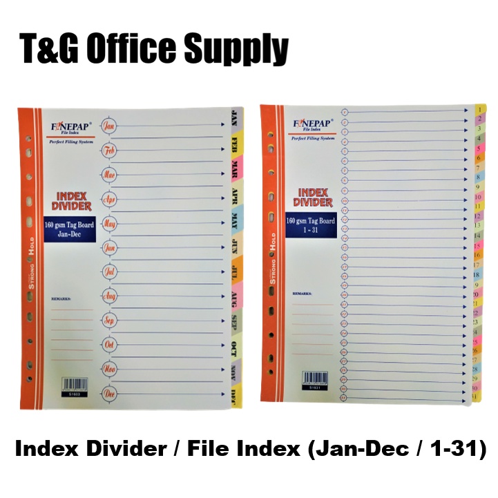 A4 Size Colour Index Divider / A4 Size File Index / Pembahagi Indeks (JAN-DEC / 1-31)