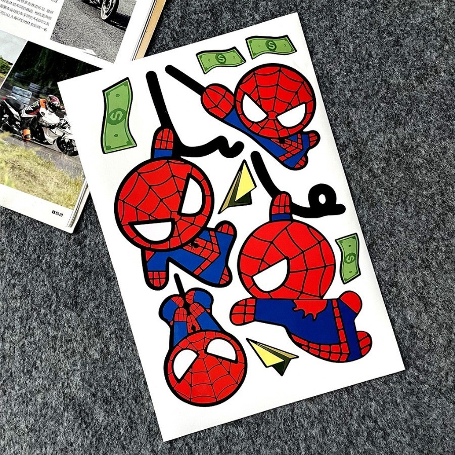 A4 Size Marvel Spider Man Car Sticker Decor Automobile Body Window Windshield Bumper Rear Tail Trunk Fuel Tank Cap Riding Helmet Laptop Motorcycle Scooter Decal Accessories