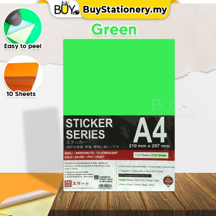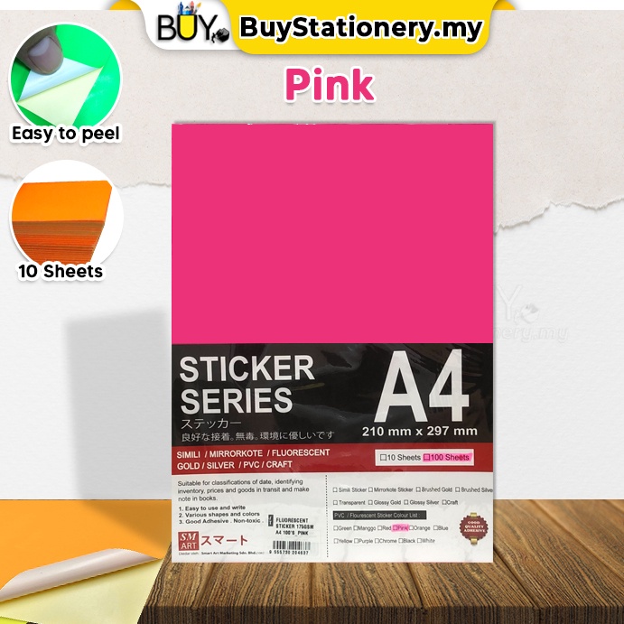 A4 Sticker Paper Colour Self Adhesive Fluorescent Stickers Label Marking 175gsm -(10s/Set) Kertas Warna Simili Craft