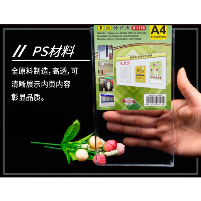 A4 Transparent Acrylic Display Multifunctional Signage Wall Sign Holder Bulletin Board