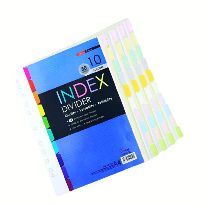 A4 Uni Colour Index Divider 10 Colours 50 Sheets File Filing Separator