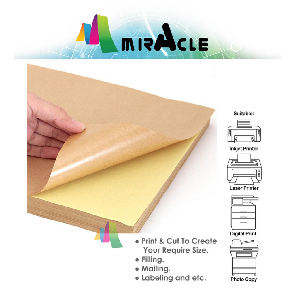 A4 size Kraft Sticker/ Brown Label Sheet Paper with Self Adhesive/ Brown Paper Kraft Sticker 10pcs/pkt
