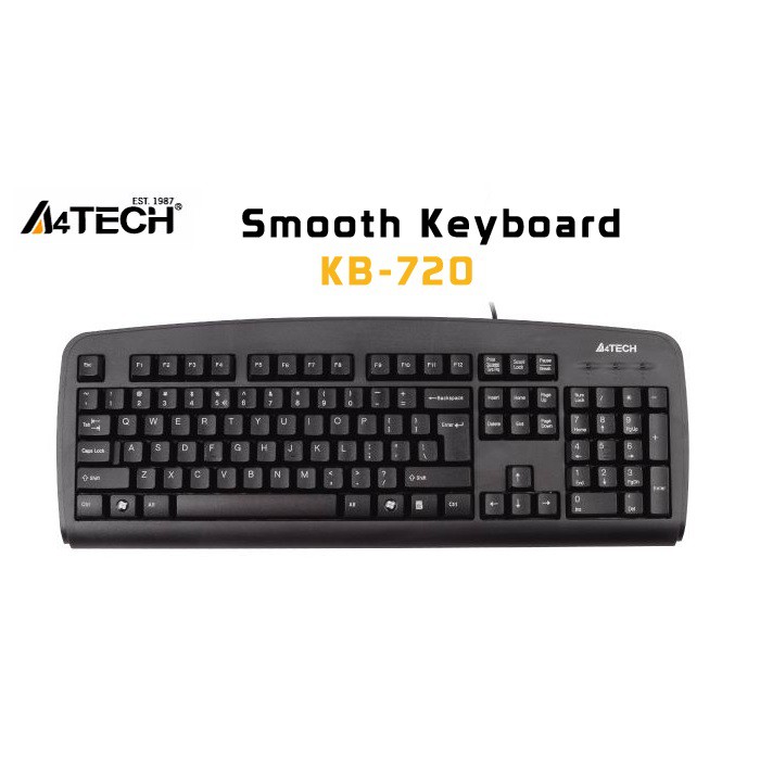 A4Tech KB-720 Smooth Wired Keyboard (USB Black) US Layout
