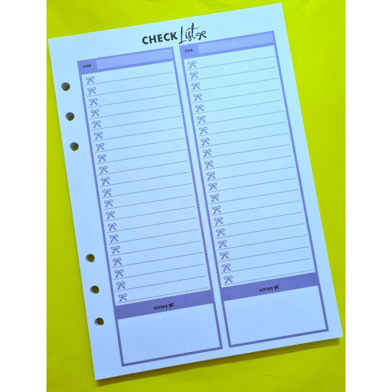 A5 40PCS CHECKLIST 6 RING PLANNER INSERTS REFILL