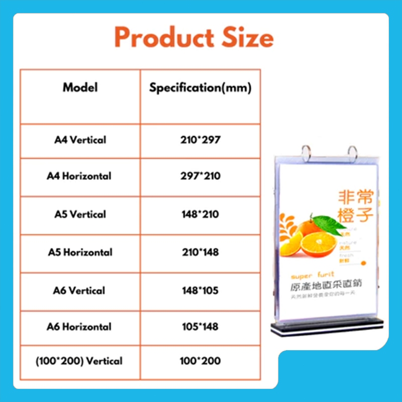 A5 A6 Paper Table Menu Stand with 6 Sleeves Flip Menu Display Stand Clear Menu Cover (Portrait & Landscape)