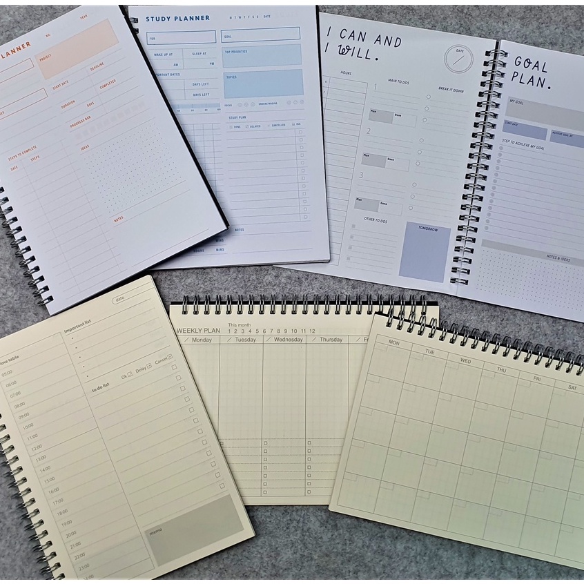 A5 DIY undated Study Project Goal Planner Book Monthly Weekly Daily Agenda Schedule Diary Study Notebook To do list 笔记本