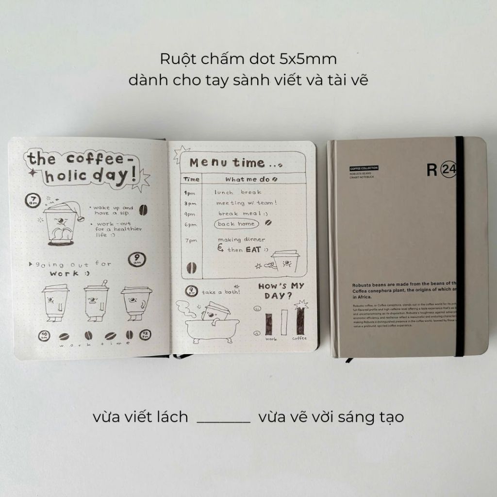 A5 horizontal dot grid notebook minimalist Crabit Coffee Beans Coffee book