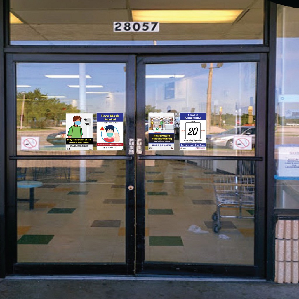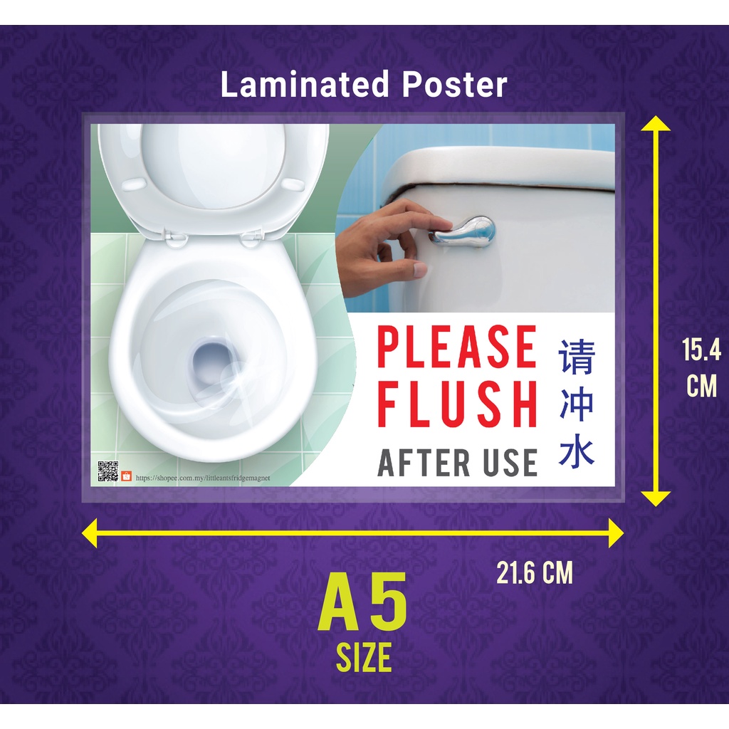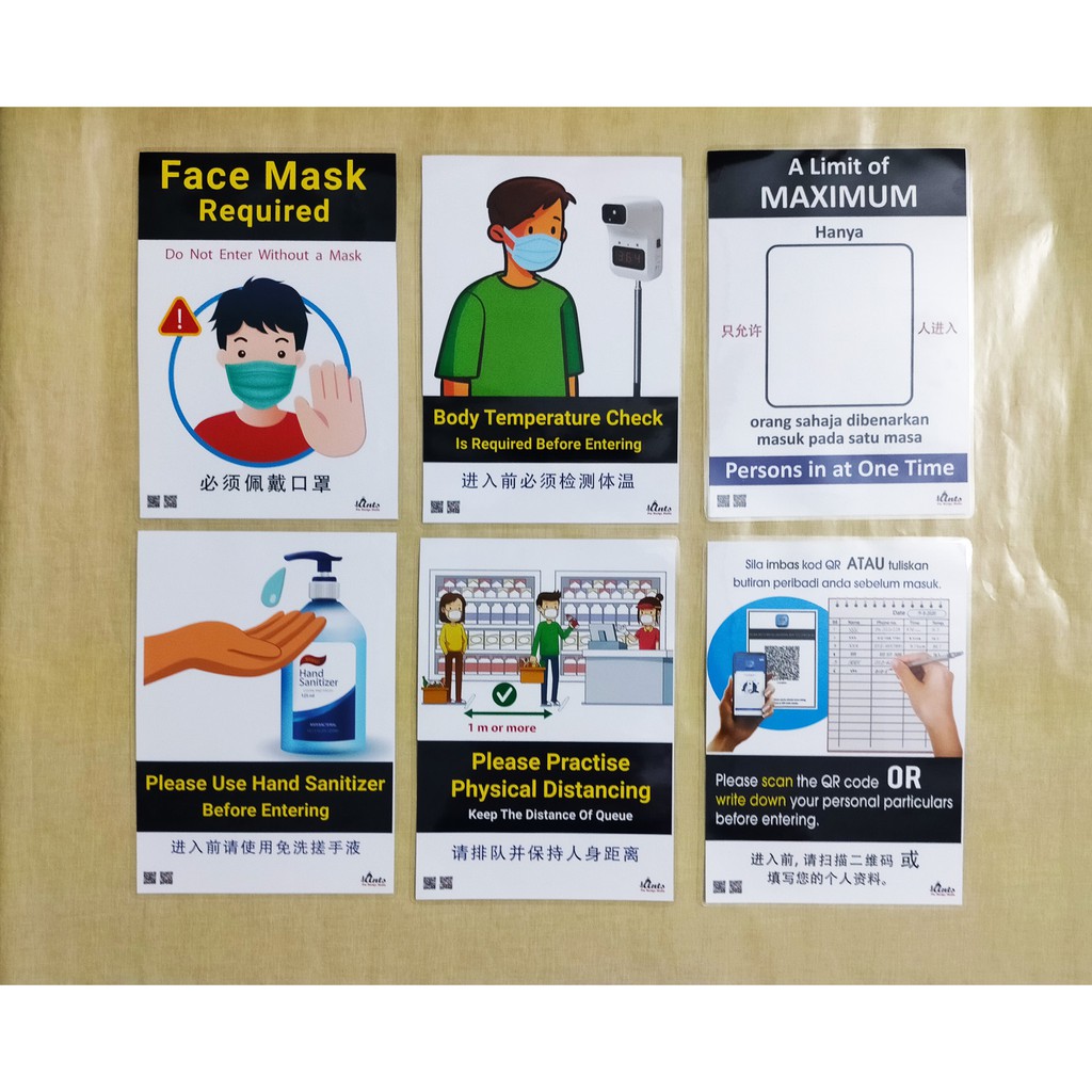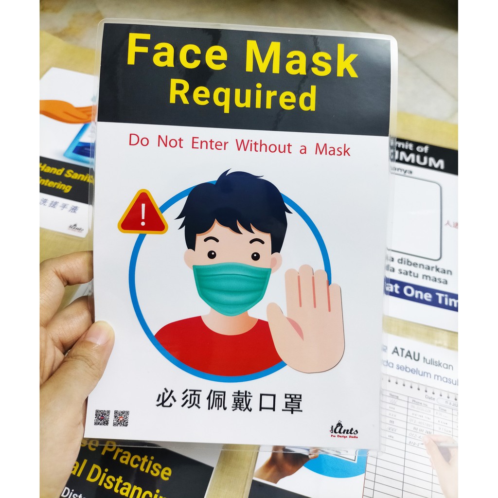 A5 Laminate Poster Sign no entry no smoking toilet tandas Signage Signboard push pull wear mask open close notice board