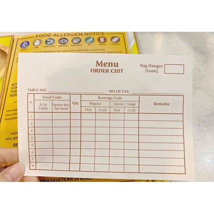 A6, A5, A4, 15cm X 15cm Normal Paper Custom made Bill Book Printing Restaurant Order chit Sheet form BUKU RESIT Billbook