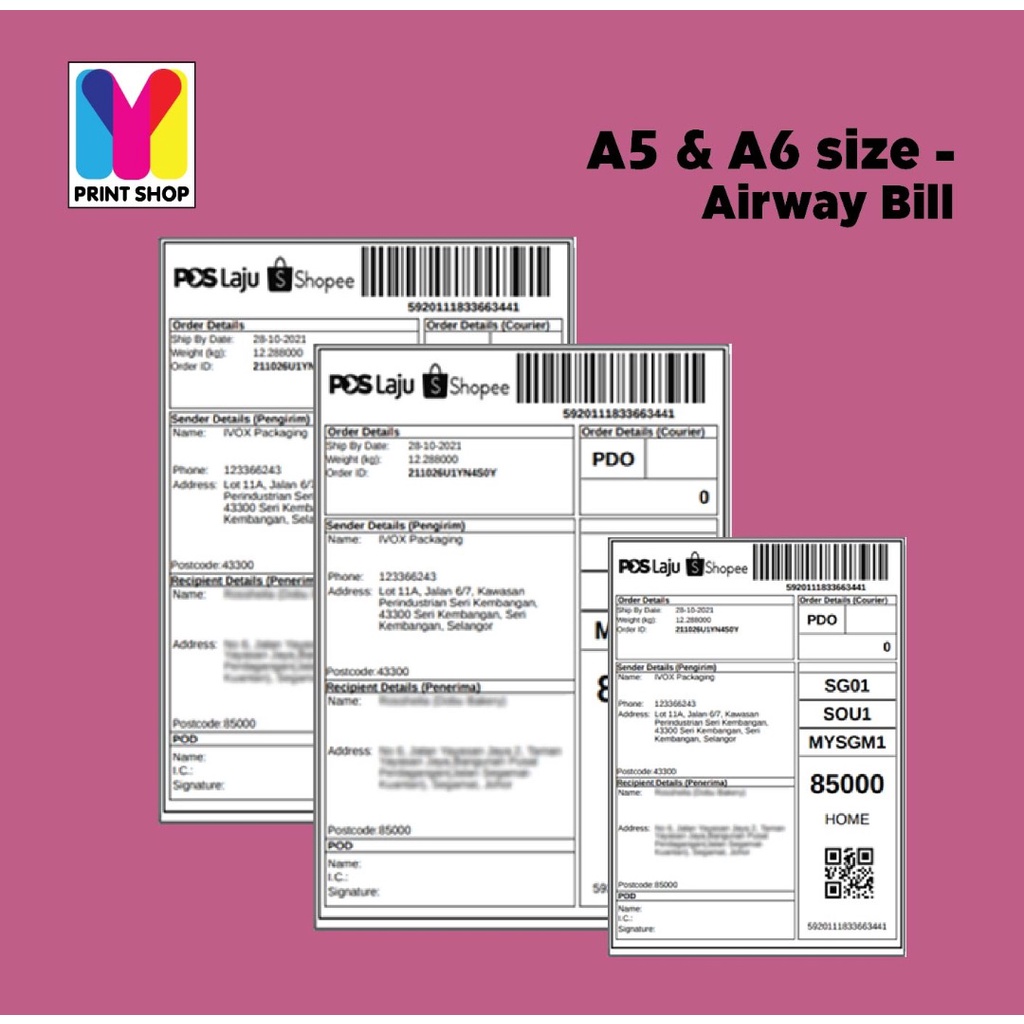 A6 A5 STICKER PAPER 100 SHEETS / SIMILI/MATTE & GLOSSY/MIRRORKOTE / WAYBILL STICKER / AWB STICKER /