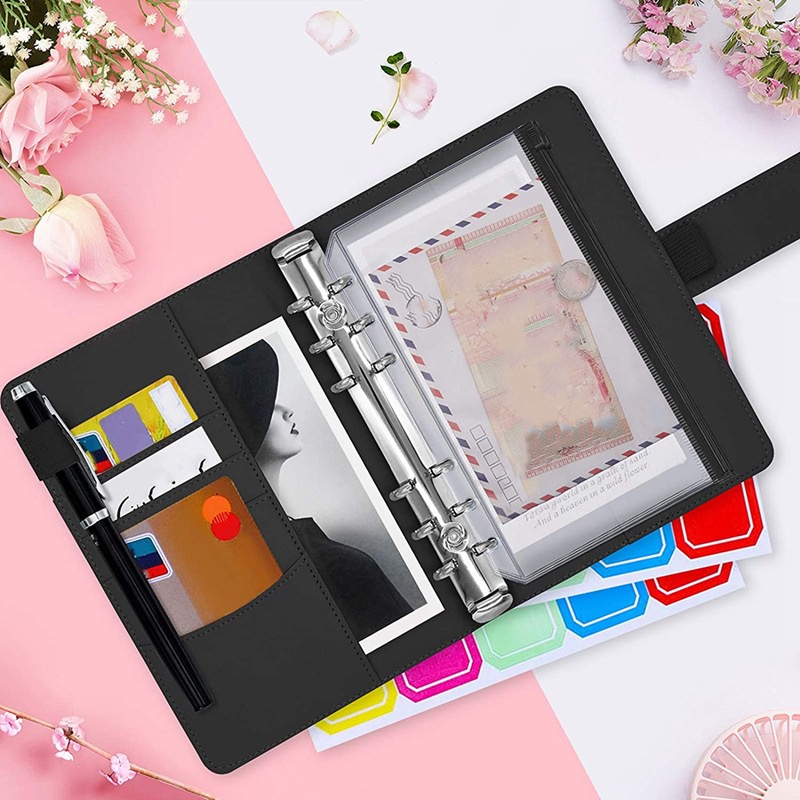 A6 Binder Planner Notebook Binder Pockets Storage Cash Envelope Bills with 10pcs 6 Hole Binder Zipper Folder Free Labels