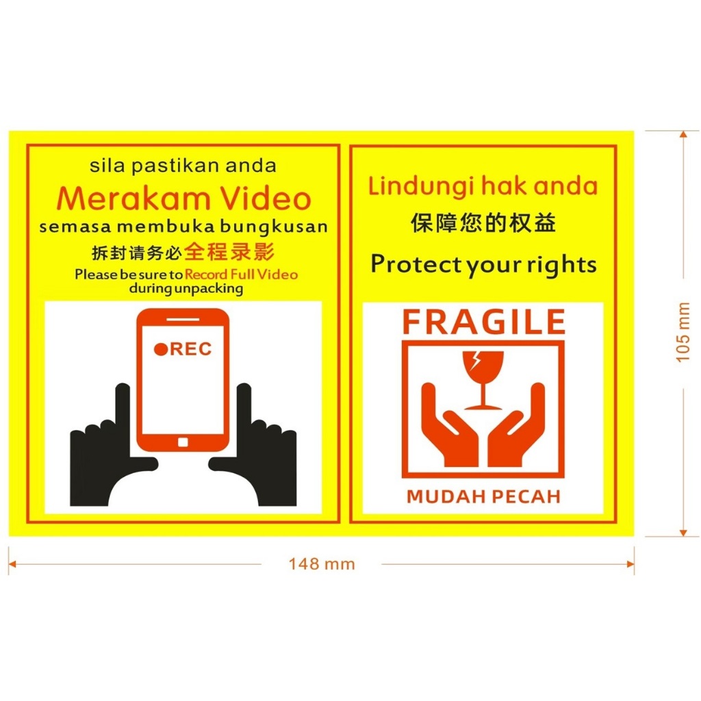 A6 Size Fragile Sticker Unboxing Sticker Unpacking Sticker Alert Sticker A6 Size Caution Sticker Warning Sticker