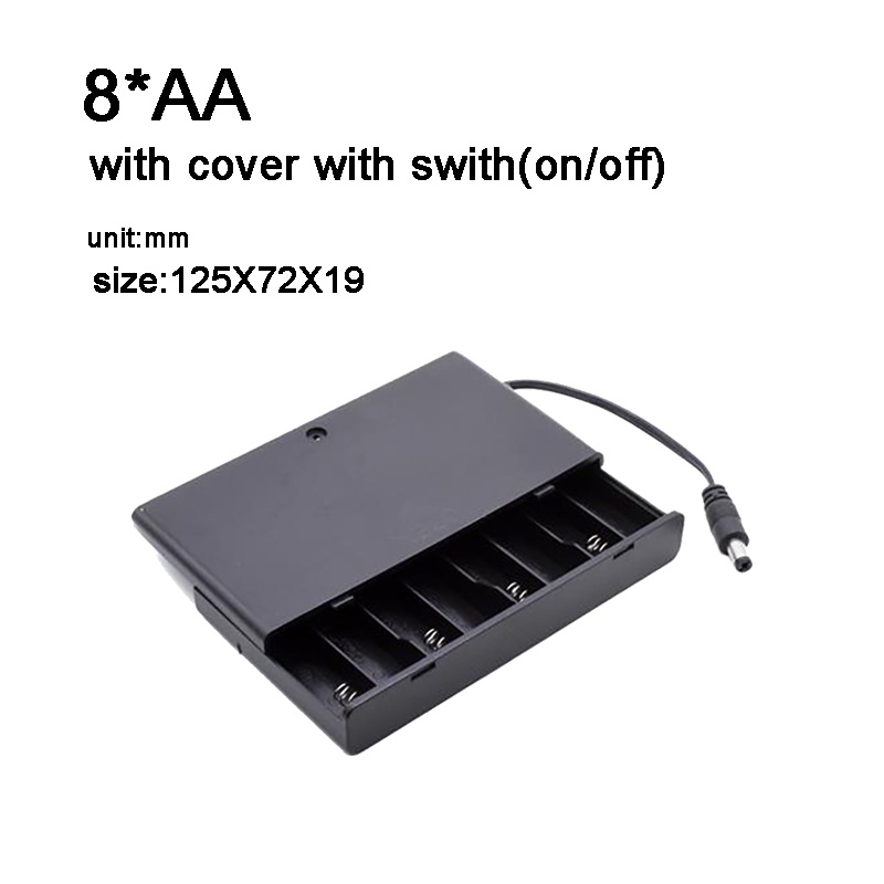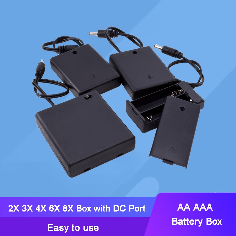 AA AAA Size 2/3/4/6/8 Slot Battery Holder Storage Box Case with DC 5.5mm X 2.1mm Port