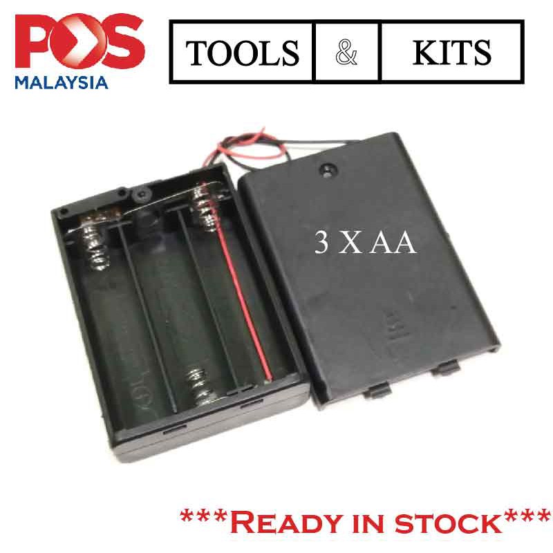 AA Battery Holder Box Case with Wire Leads ON/OFF Button for 2AA/3AA/4AA Battery [Pemegang Batteri dgn cover]