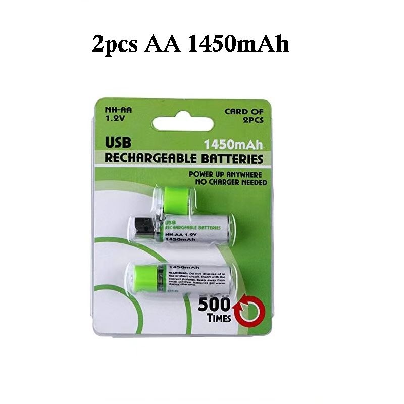 AA Size USB Rechargeable Battery 1.2V 1450mAH Li-ion Lithium Bateri Up to 1000 Times No Need Charger 2pcs/pack