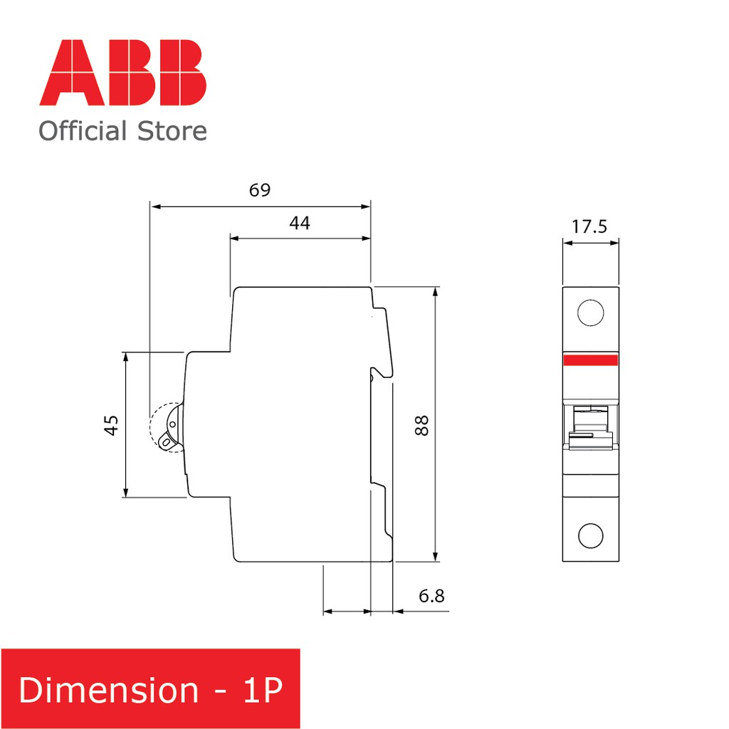 ABB 6kA MCB SH201 6A, 10A, 16A, 20A, 25A, 32A, 40A, 50A, 63A | 1 POLE (1P) | C-CURVE