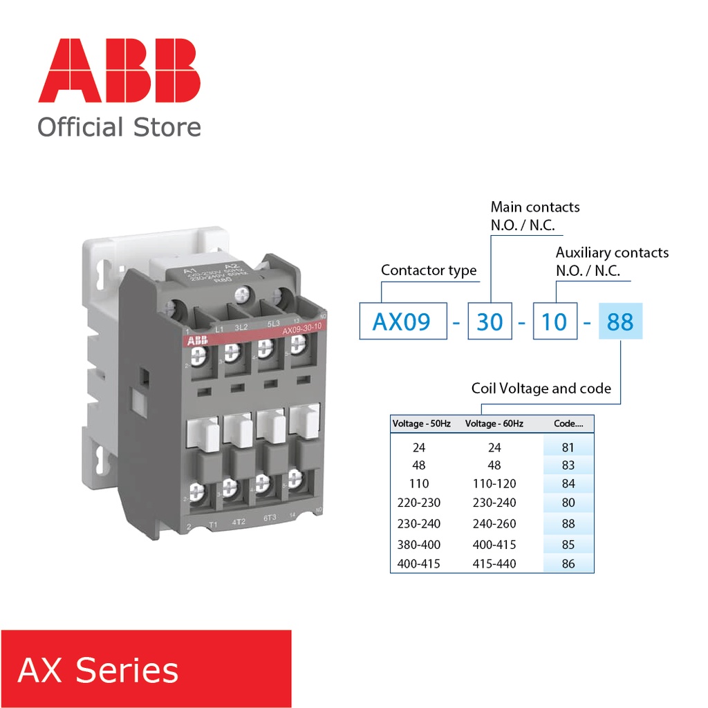 ABB Contactor AX150-30-11-88 (240V) | 3 Pole (3P) | 1NO/1NC