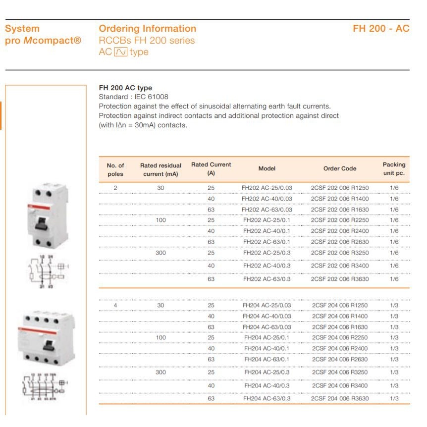 ABB RCCB 40A 63A 100A 30ma 100ma 300ma RCCB ELCB RCD earth leakage breaker