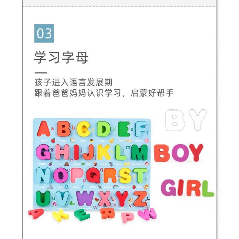 ABC 3D Wooden alphabet kids puzzle board/Early learning education toodle