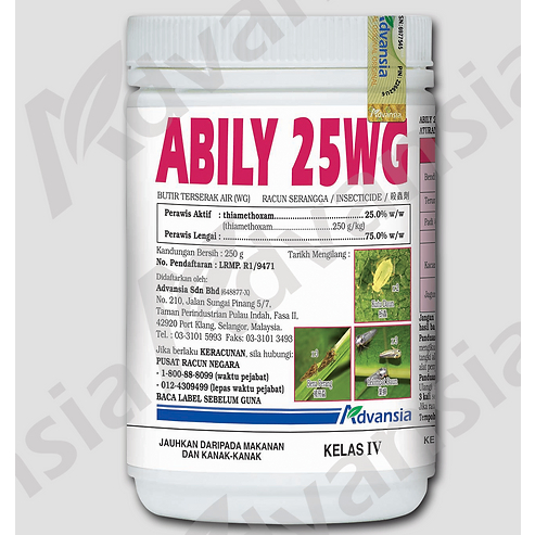 ABILY 25WG/ Racun Serangga/ thiamethoxam 25.0% w/w/ Lelompat Daun/ Kutu Daun/ Lalat Ophiomyia/ Pengorek Buah