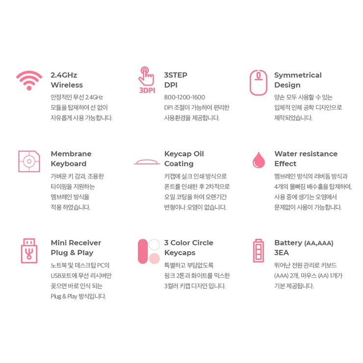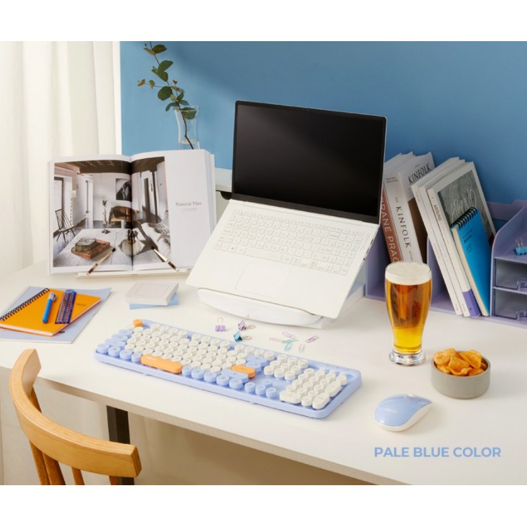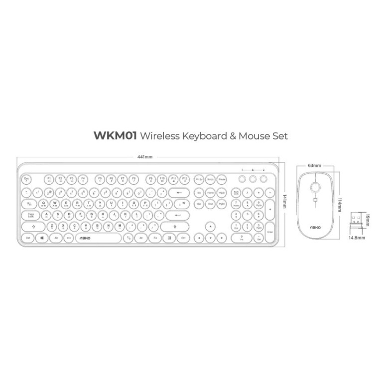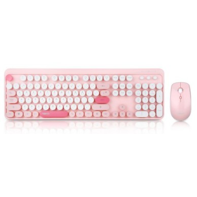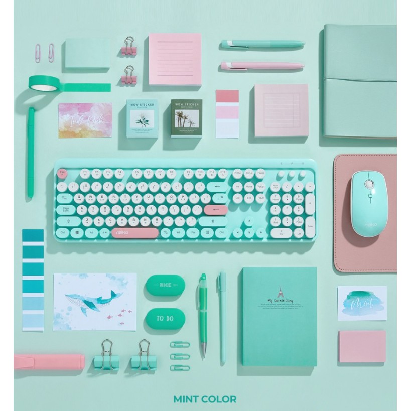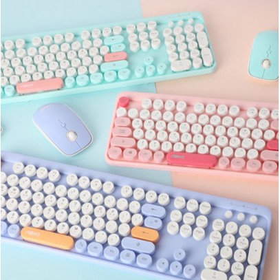 ABKO Retro Wireless Keyboard & Mouse Combo Set(Pink, Mint, Blue) Korean English Layout Windows 7, 8, 10 USB Receiver