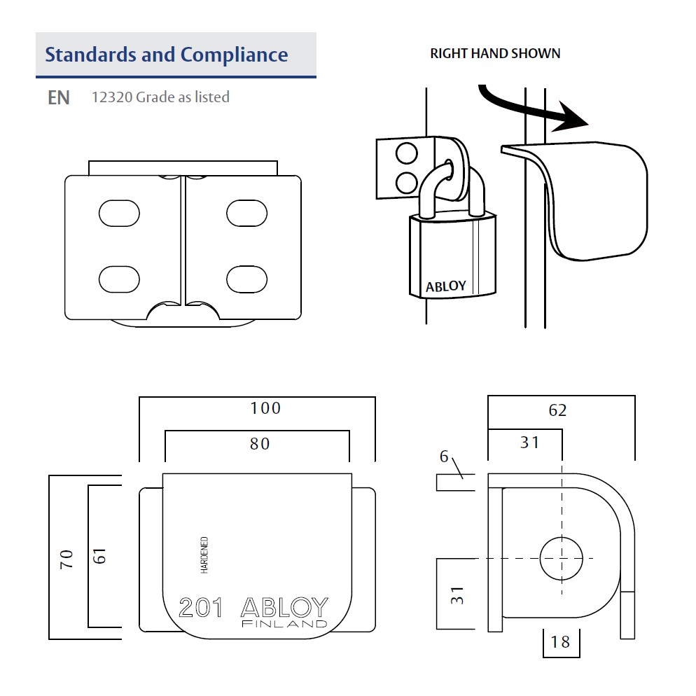 ABLOY GENUINE PL201 / PL203 POLYESTER COATED HARDENED STEEL CASE PADLOCK LOCKING PLATE (FINLAND)