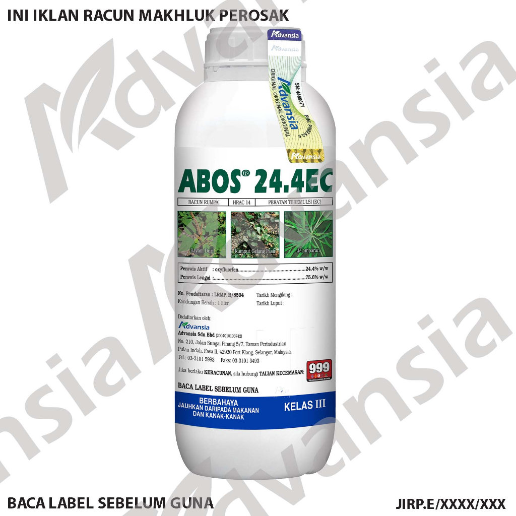 ABOS 24.4EC/ Racun Rumpai/ oxyfluorfen 24.4% w/w/ Rumput Padi Burung/ Rumput Seri Pagi/ Rumput Gelang Pasir/ Jelamparan