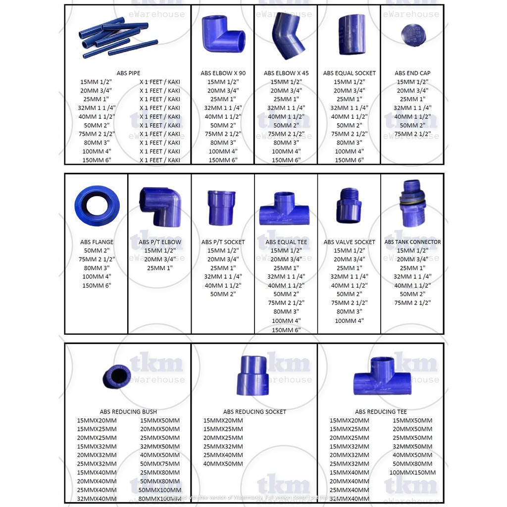 ABS Fitting 1/2" 15mm 3/4" 20mm 25mm 1" (Elbow Tee Socket End Cap PT Socket PT Tee Valve Socket PT Elbow 45deg Elbow)