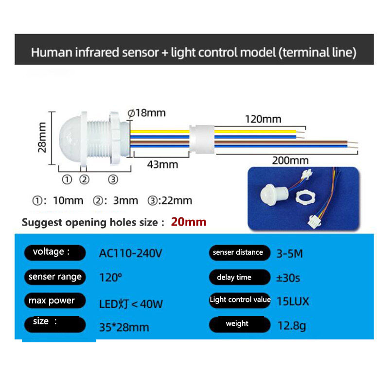 AC 110v 220v PIR Infrared Motion Automatic Smart IR Light control Switch Human Body Sensor terminal Induction Indoor Lamp MY2L2