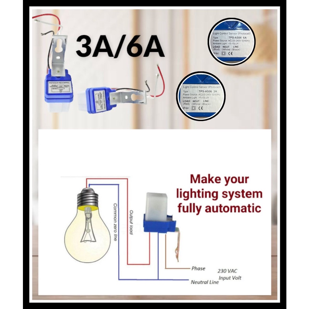 AC 220V 3A/6A Switch Automatic On Off Street Light/Lampu Jalan Switch Sensor Photo Control Photo Switch Photocell