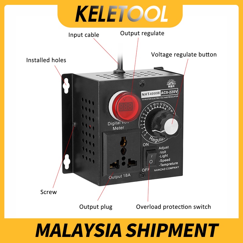 AC 220V voltage regulator portable temperature speed adjustable voltage regulator compact variable voltage controller