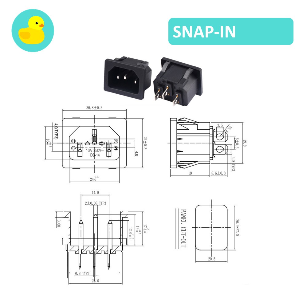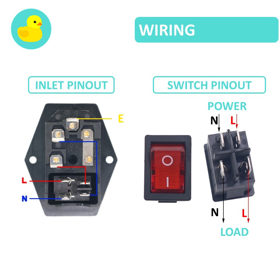 AC Power Inlet Socket Panel Connector 250V 10A With LED Rocker Switch