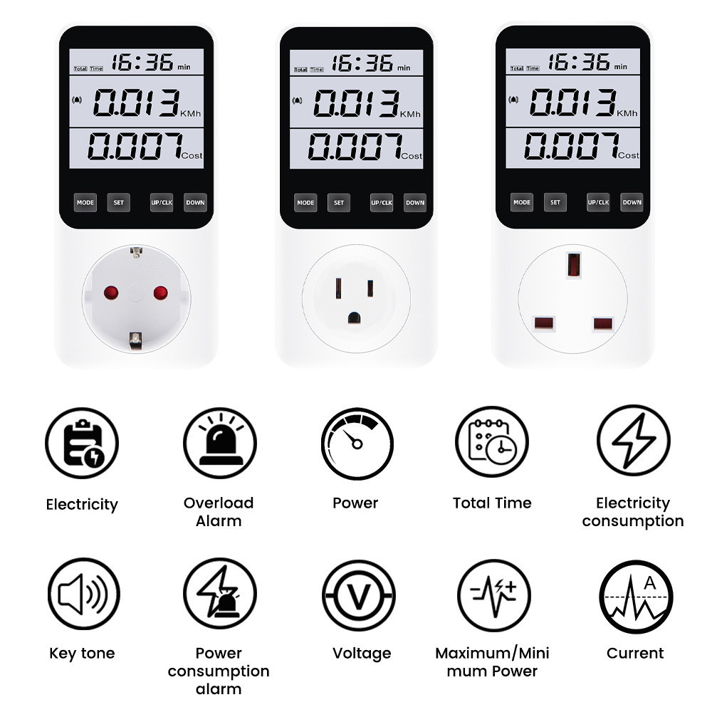AC120V/230V Multi-Function Backlit Large Screen Power Meter Power Monitor Smart Metering Socket