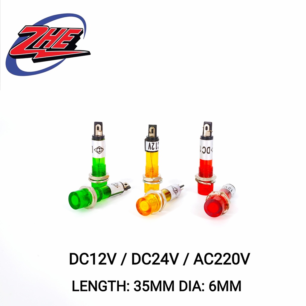 AC220V DC12V DC24V MB-238 MINI NEON LAMP INDICATOR LAMP PILOT LAMP ( RED / GREEN / YELLOW ) PILOT LAMPU LAMPU NEON