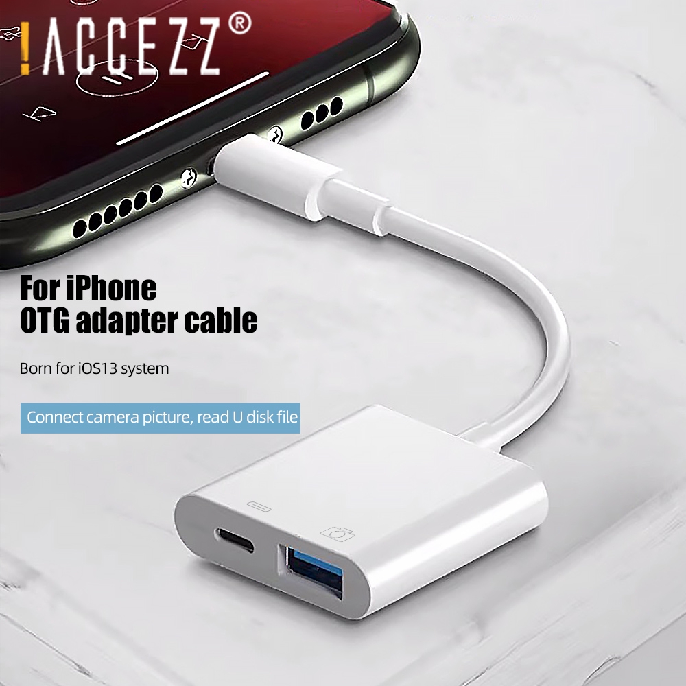 ACCEZZ OTG Adapter Cable for iOS 13 14 15 Lighting to USB Connector With Charging Port for U Disk Keyboard Mouse