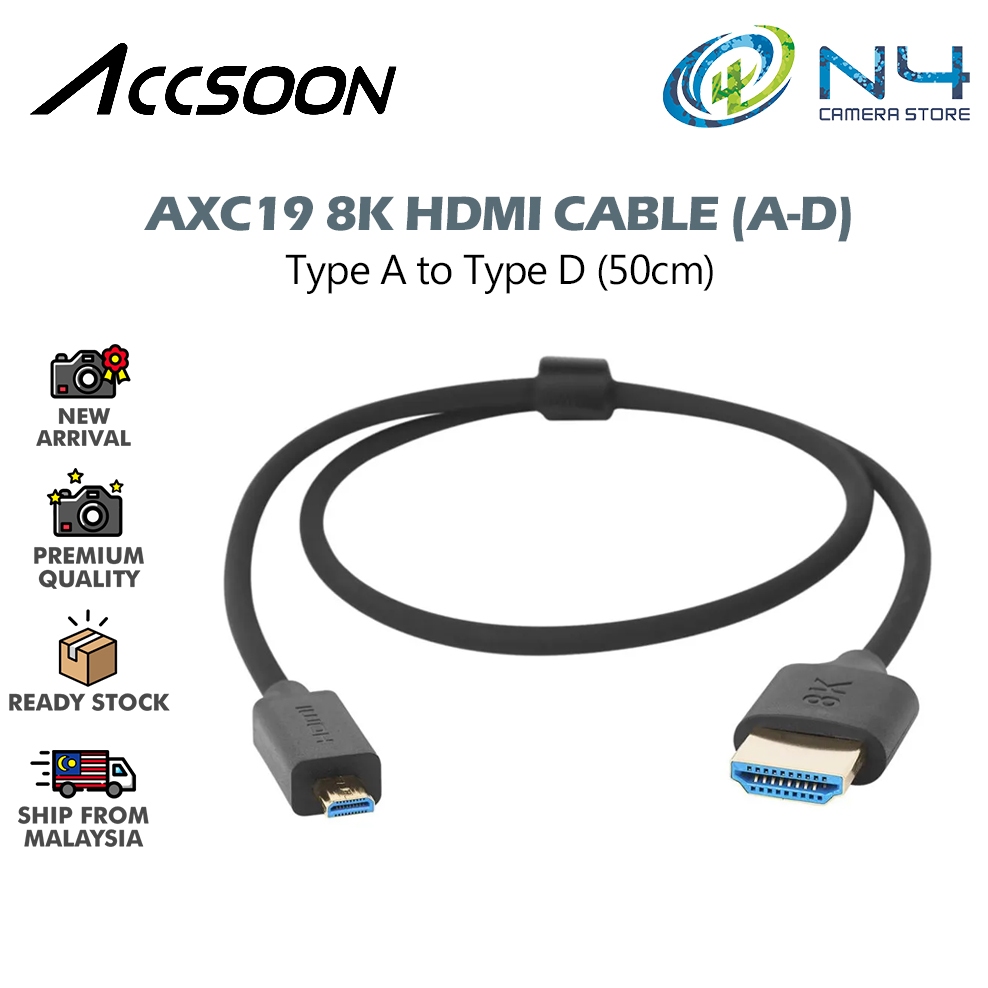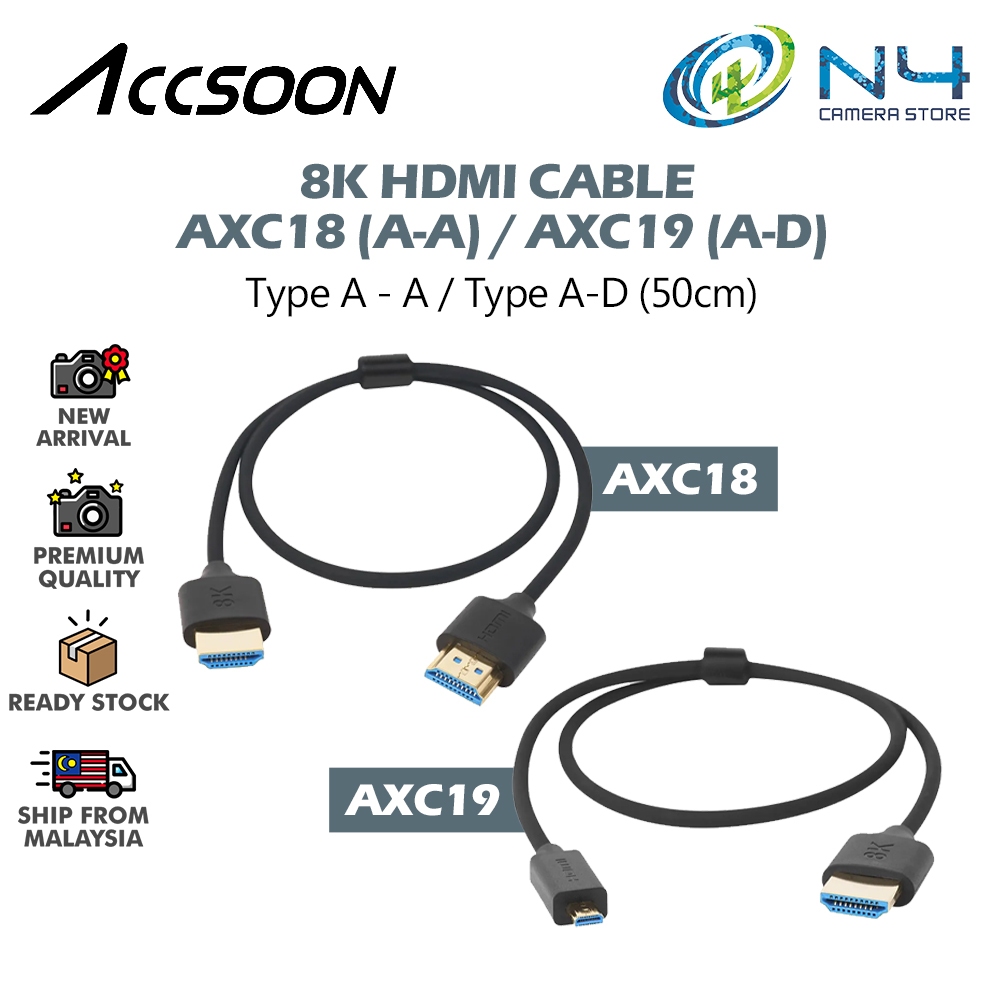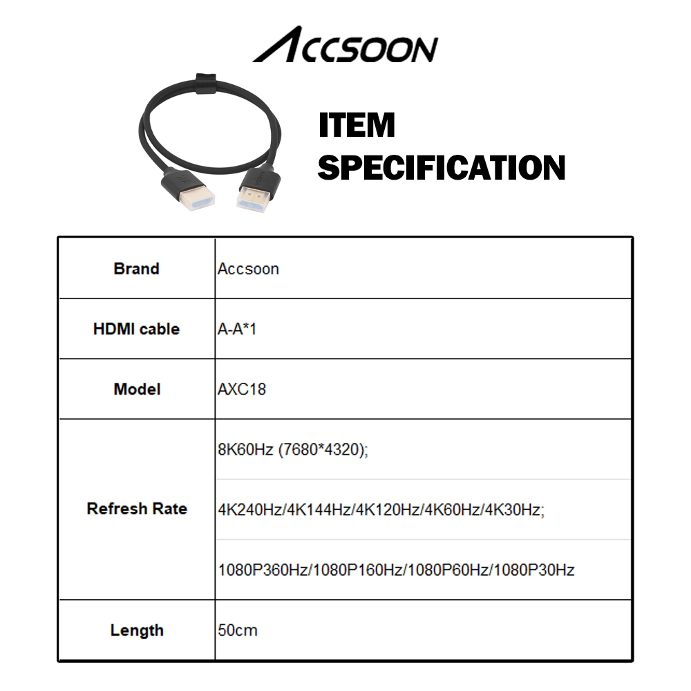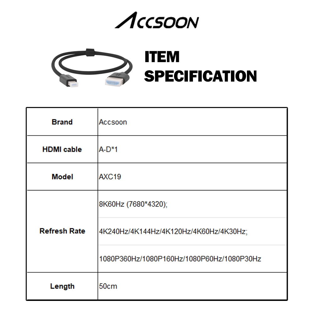 ACCSOON AXC18 / AXC19 8K HDMI CABLE TYPE A TO TYPE A / TYPE A TO TYPE D CABLE (50CM)