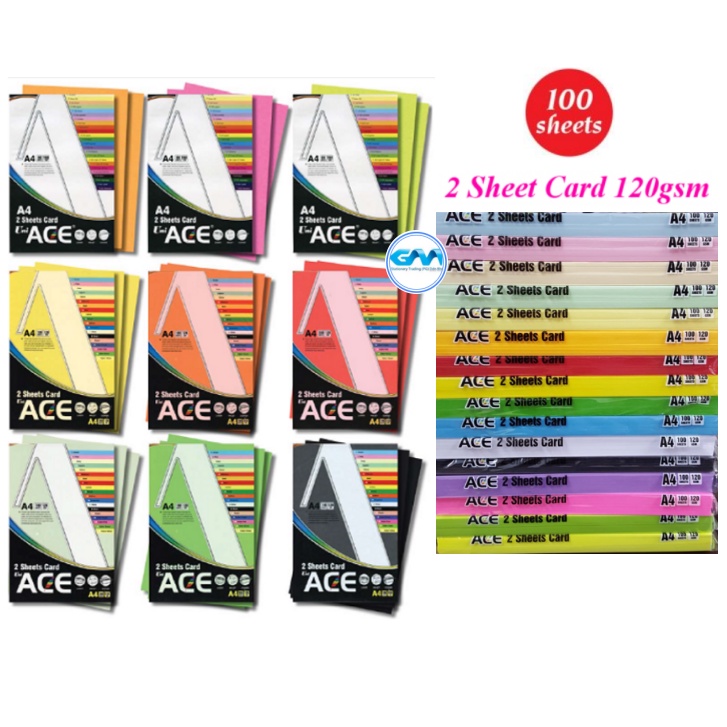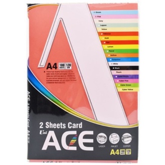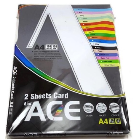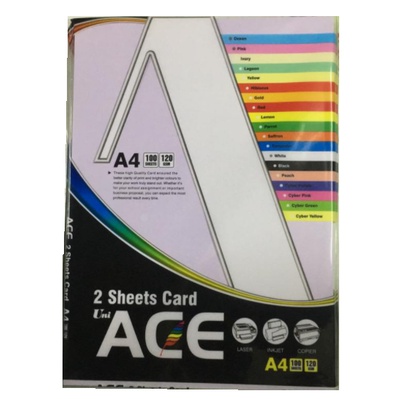 ACE A4 2 sheets Card 120gsm 100 sheets | Two Sheets Card Colour Paper 120gsm | A4 Kertas Warna