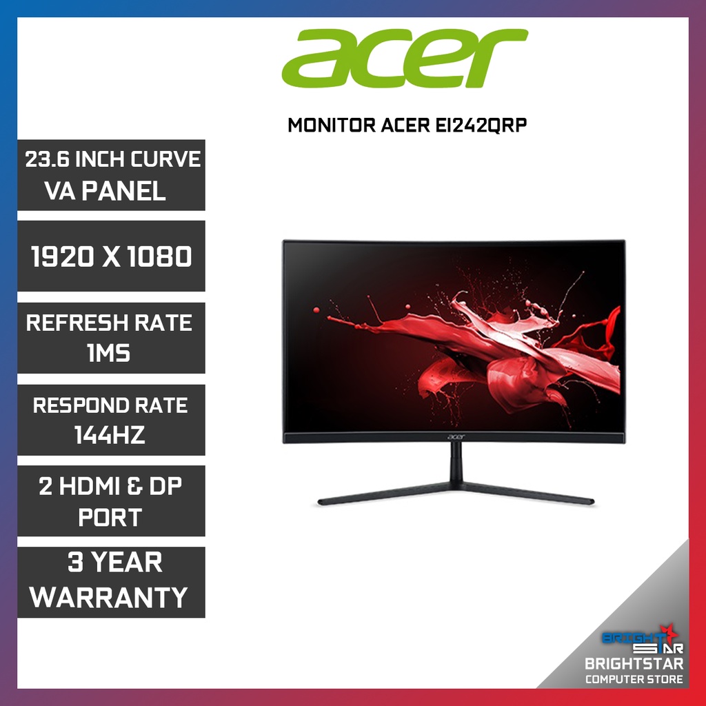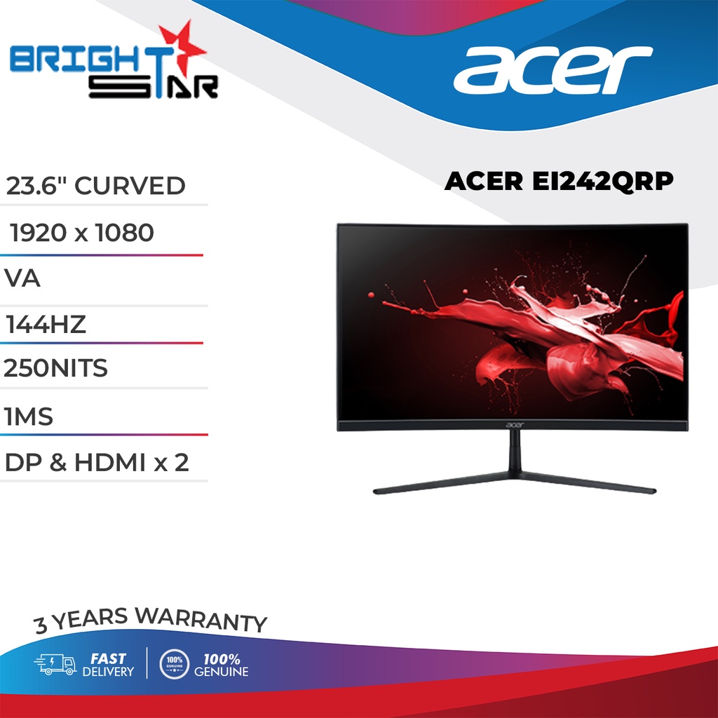 ACER 24" ACER EI242QRP MONITOR / 23.6" 1200R CURVED VA / 1920x1080@144HZ FHD / 250NITS / 5MS(GTG) / DP, HDMI /