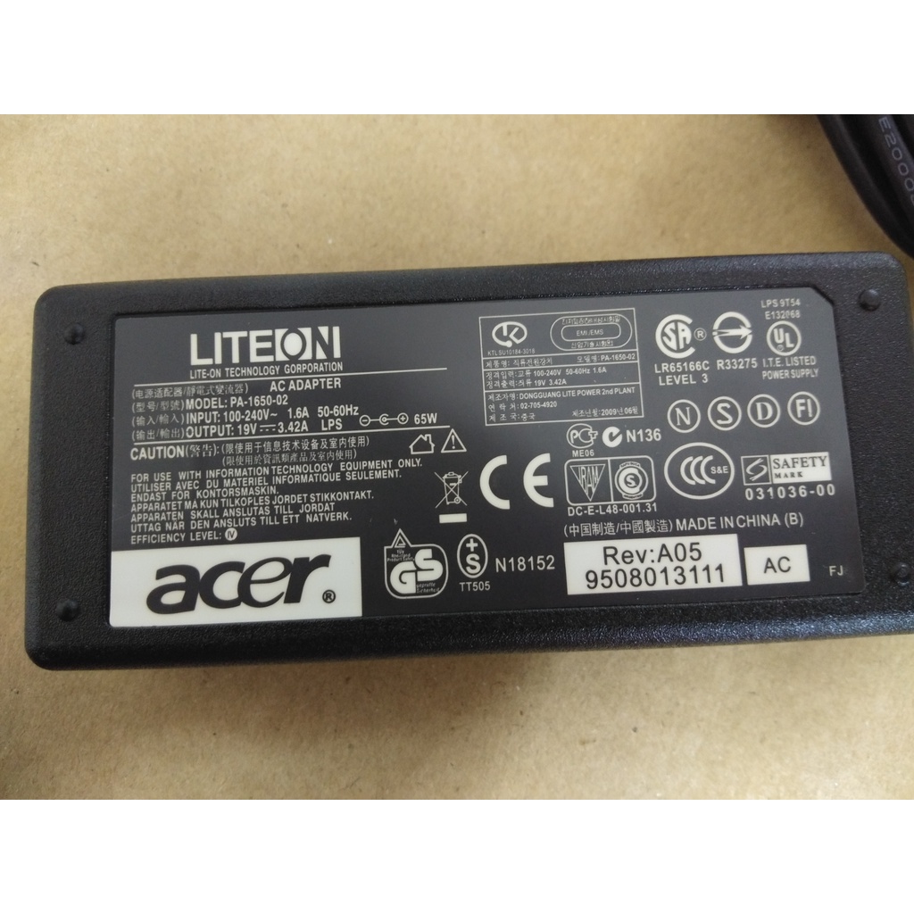 ACER AC ADAPTER POWER SUPPLY PA-1650-02 PA-1700-02 SADP-65KB POWER CORD DC-Output : 19V-3.42A-65W (AC)