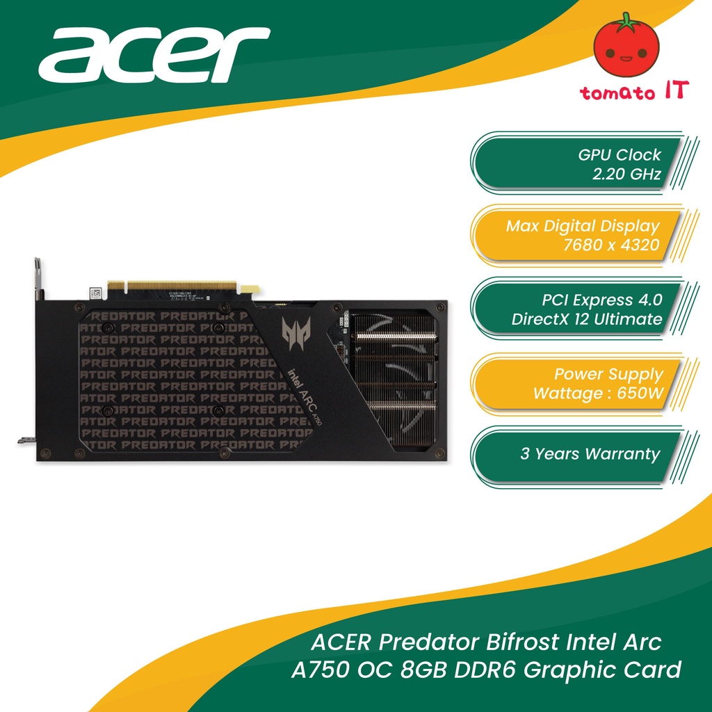 ACER Predator Bifrost Intel Arc A750 OC 8GB DDR6 Graphic Card