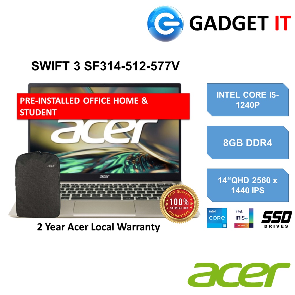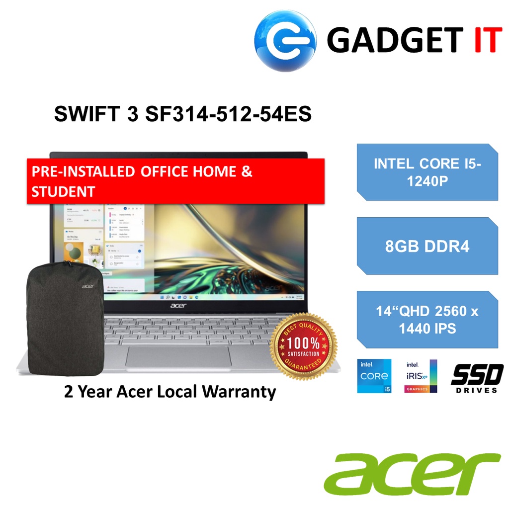 ACER SWIFT 3 SF314-512-53HR / SF314-512-577V / SF314-512-54ES LAPTOP (I5-1240P,8GB,512GB SSD,14" QHD,IRIS Xe GRAPHICS