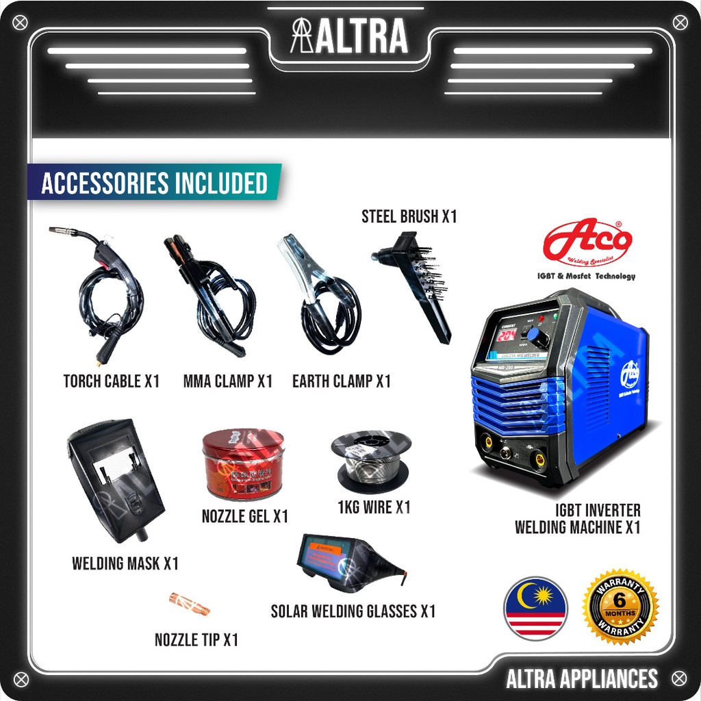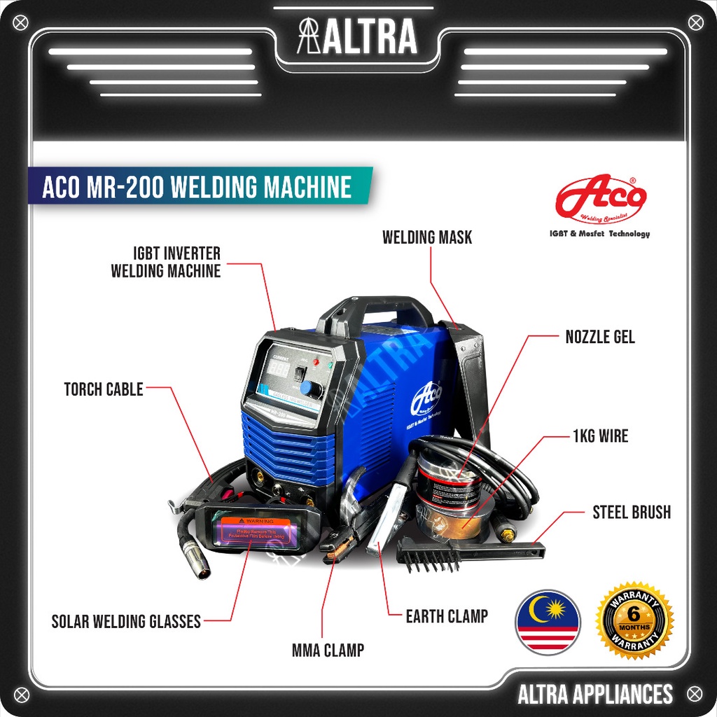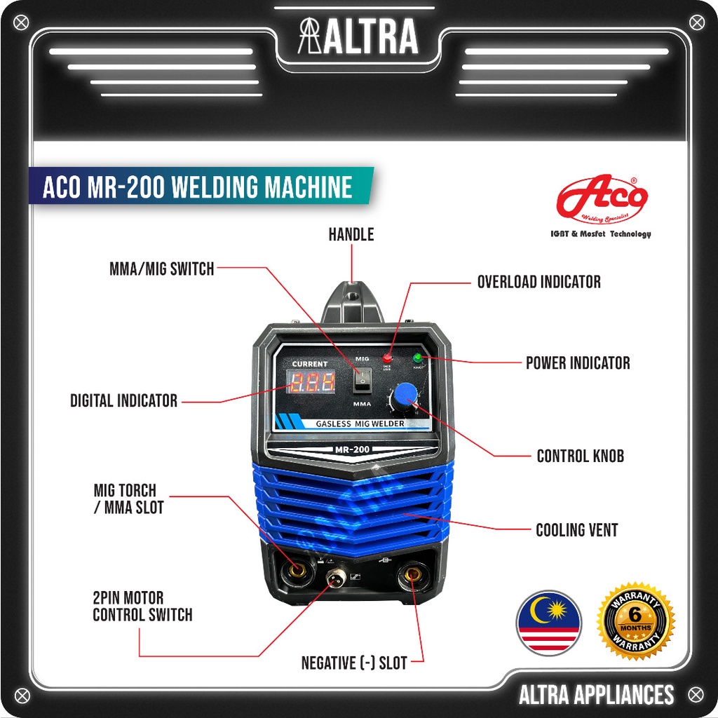 ACO MR200 - 2 in 1 Gas-less Welding Machine / MIG & MMA Inverter Welder / MIG Welding Set