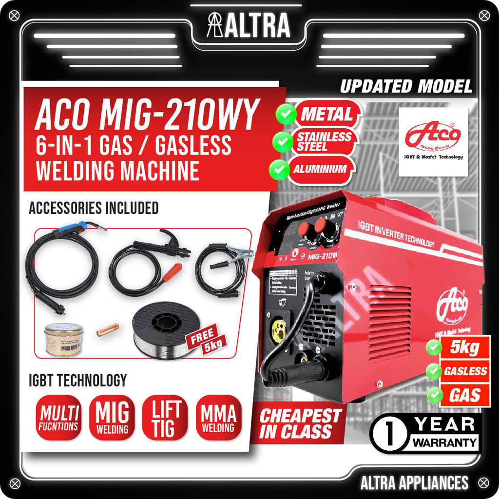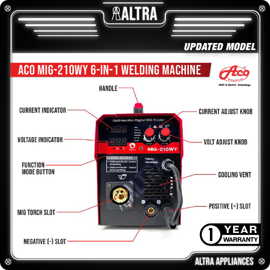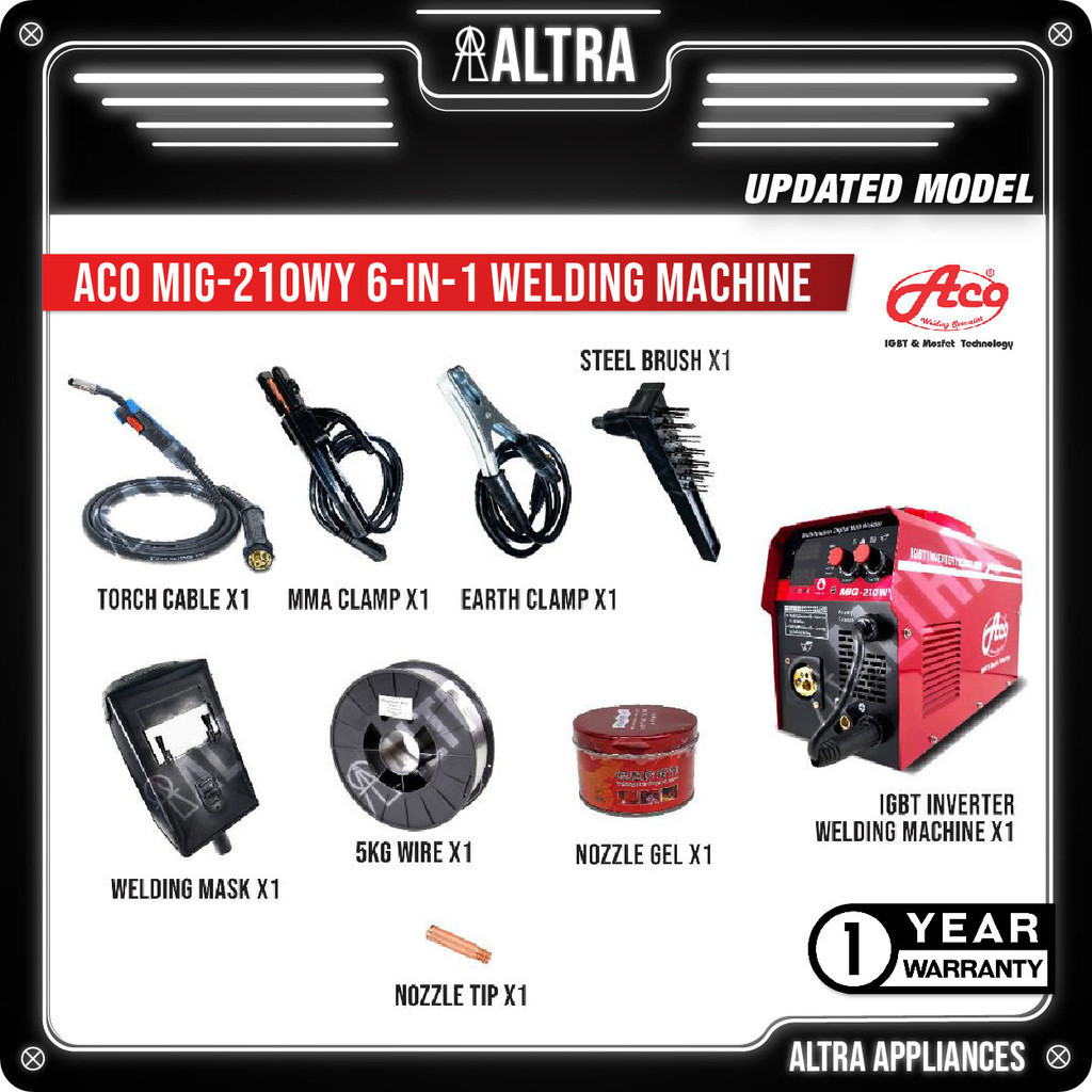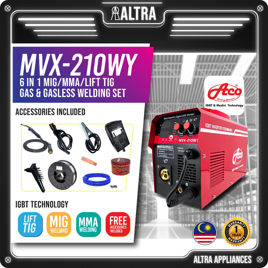 ACO MVX-210WY / MIG-210WY - 6 IN 1 GAS & GASLESS WELDING MACHINE | MIG & MMA | LIFT TIG | MMA INVERTER | WELDING SET